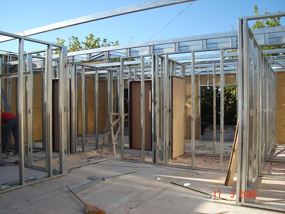 CONSTRUCCION EN STEEL FRAME. CERRAMIENTO EXTERIOR CON PLACA DE CEMENTO. TECHO INCLINADO OCULTO. INTERIORES EN PLACA DE YESO.