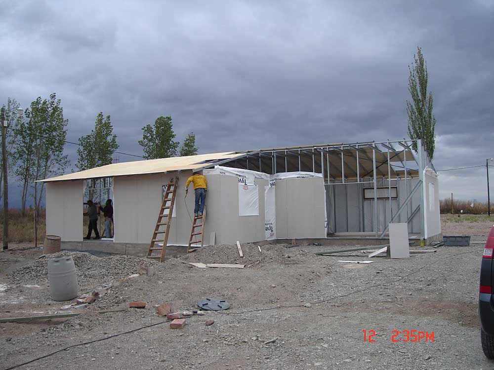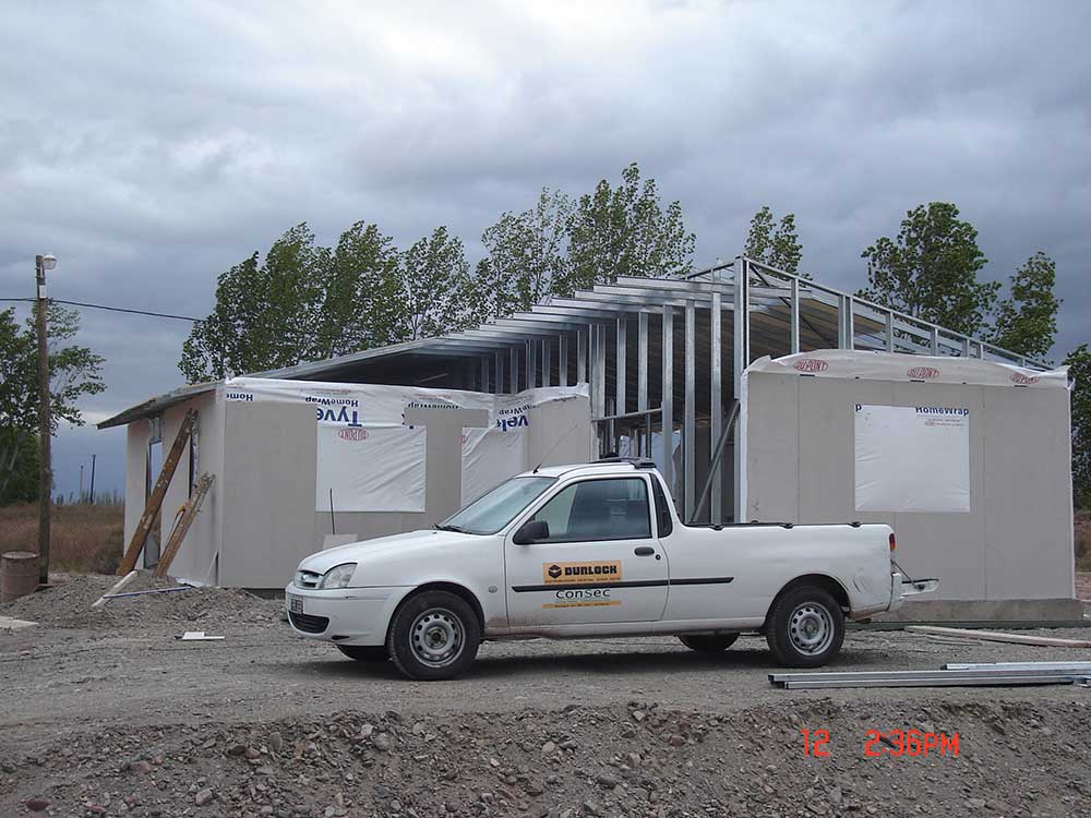 CONSTRUCCION EN STEEL FRAME. CERRAMIENTO EXTERIOR CON PLACA DE CEMENTO. TECHO INCLINADO. INTERIORES EN PLACA DE YESO.
