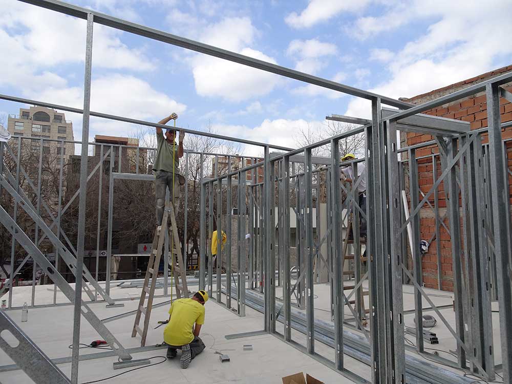 CONSTRUCCION EN STEEL FRAME EN 2 PLANTAS. CERRAMIENTO EXTERIOR CON PLACA DE CEMENTO. ENTREPISO CON PLACA DE CEMENTO. INTERIORES EN PLACA DE YESO.