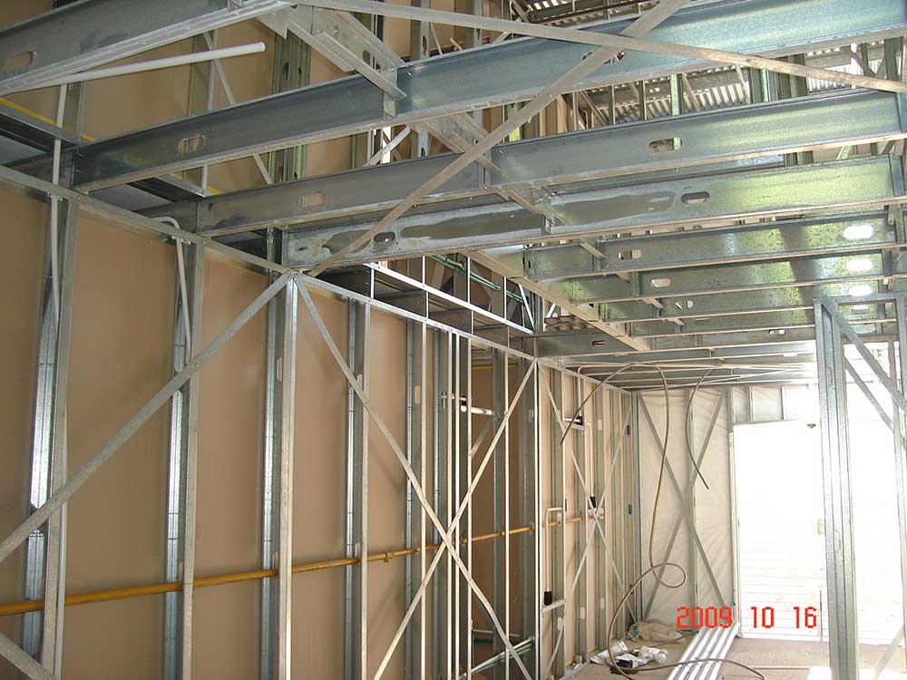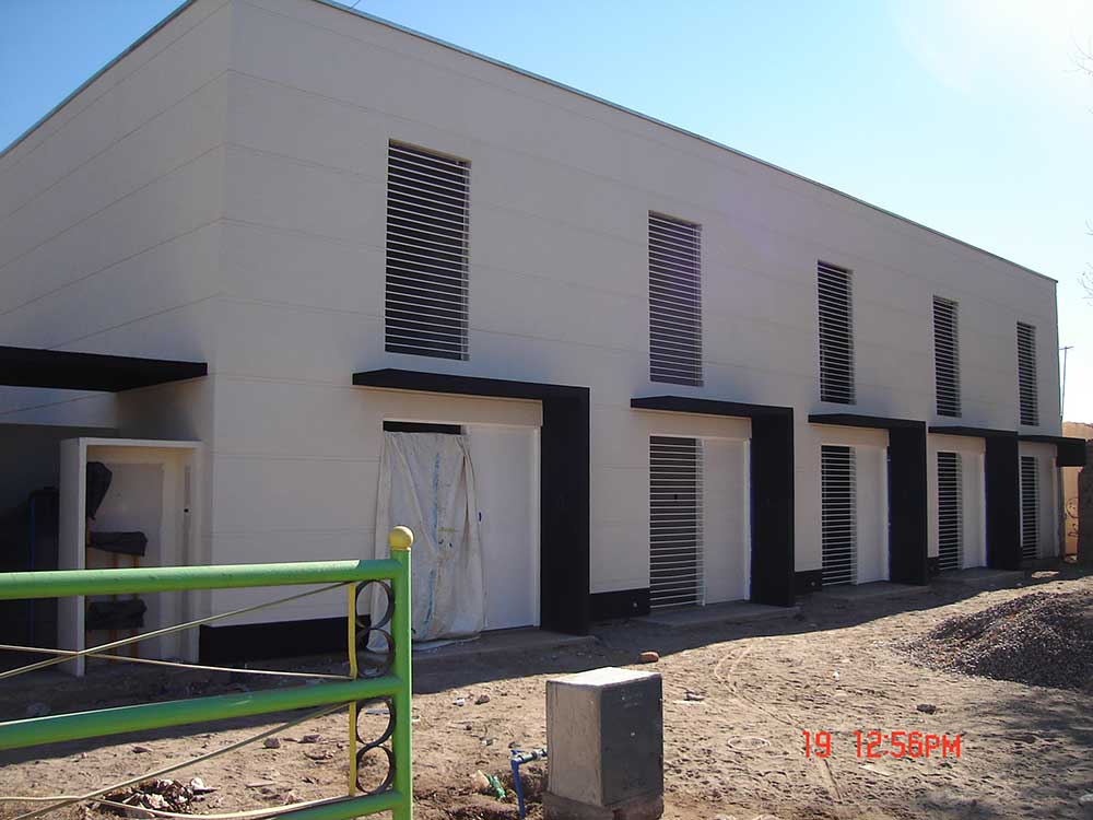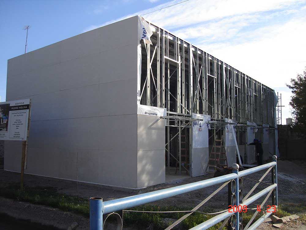 CONSTRUCCION EN STEEL FRAME DE DOS PLANTAS. CERRAMIENTO EXTERIOR CON DOBLE PLACA DE CEMENTO. ENPREPISO DE DOBLE PLACA DE CEMENTO CON AISLACION. TECHO INCLINADO OCULTO. INTERIORES EN PLACA DE YESO.