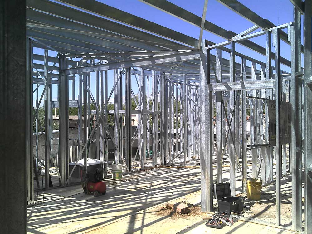 CONSTRUCCION EN STEEL FRAME DE DOS PLANTAS. CERRAMIENTO EXTERIOR CON PLACA DE CEMENTO. ENPREPISO DE PLACA DE CEMENTO CON AISLACION. TECHO INCLINADO OCULTO. INTERIORES EN PLACA DE YESO.